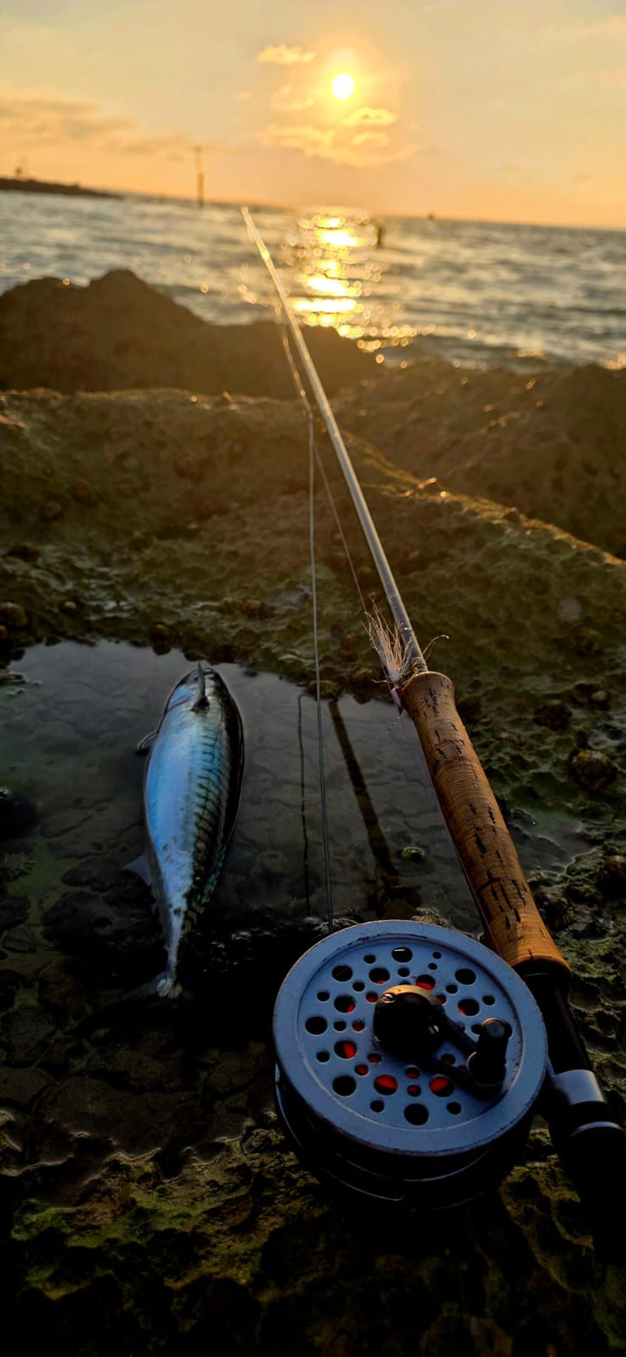 Golden_Grey_Mullet and flyfishing_rod on grass